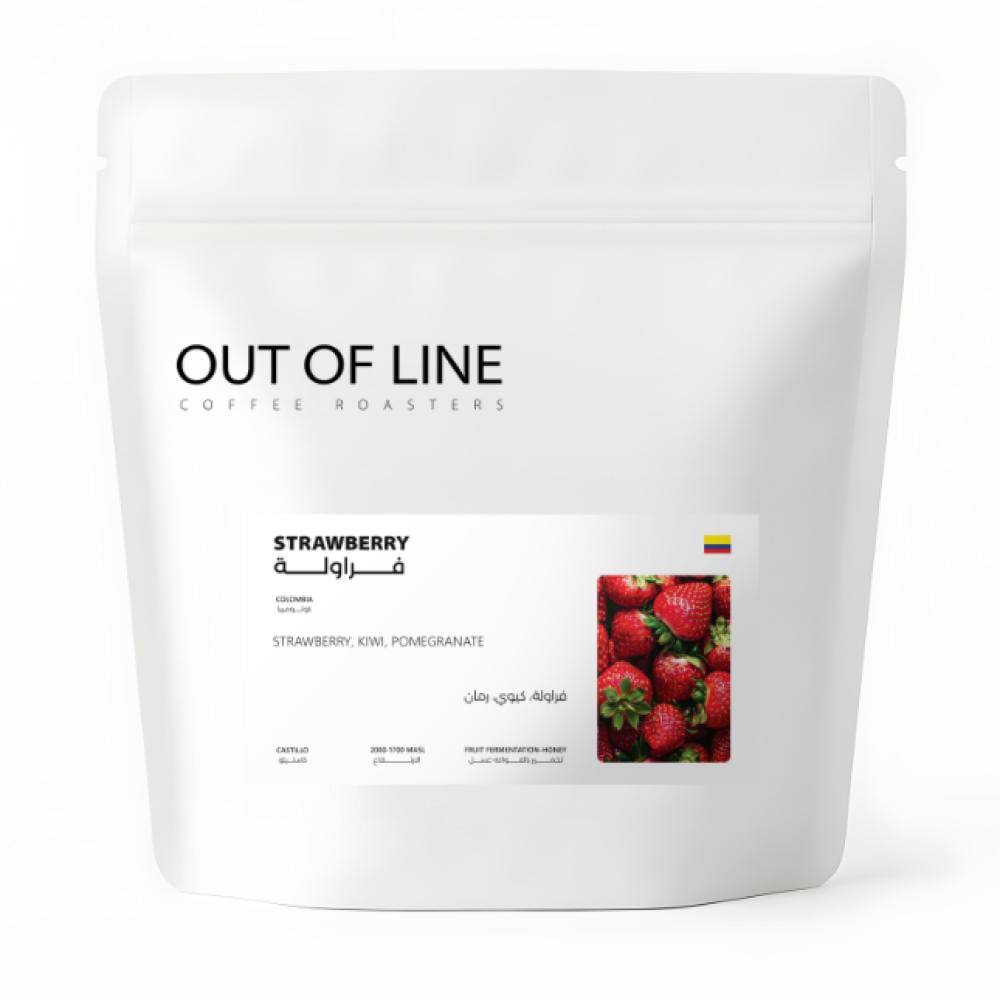 قهوة فراولة – Strawberry من Out of Line، تعكس جودة البن الكولومبي وروح القهوة المختصة، بنكهات فواكه واضحة وتجربة تحضير متقنة للفلتر والإسبريسو.