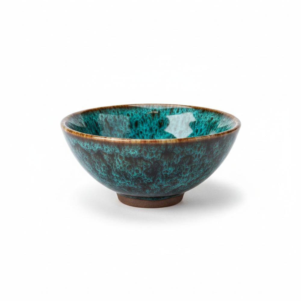 تجربة بصرية موازية لمتعة المذاق! هذا الكوب السيراميك المصنوع يدوياً هو قطعة فنية مصممة لرفع مستوى تقديم قهوتك المختصة. يتميز بطلاء زجاجي فاخر باللون الأخضر المائل للأزرق الداكن (الزمردي)، مع تدرجات طبيعية تحاكي جمال الصخور وعمق الطبيعة، مما يضيف لمسة شخصية ودفئاً لكل كوب.