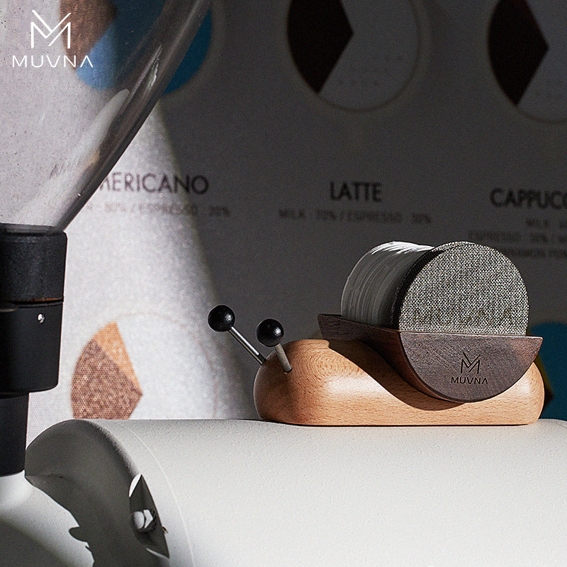 حامل الفلاتر من MUVNA يأتي بتصميم مستوحى من شكل الحلزون، مصنوع يدويًا من خشب الجوز الطبيعي والخشب الزان، ليضفي لمسة دافئة وفاخرة على ركن تحضير القهوة.